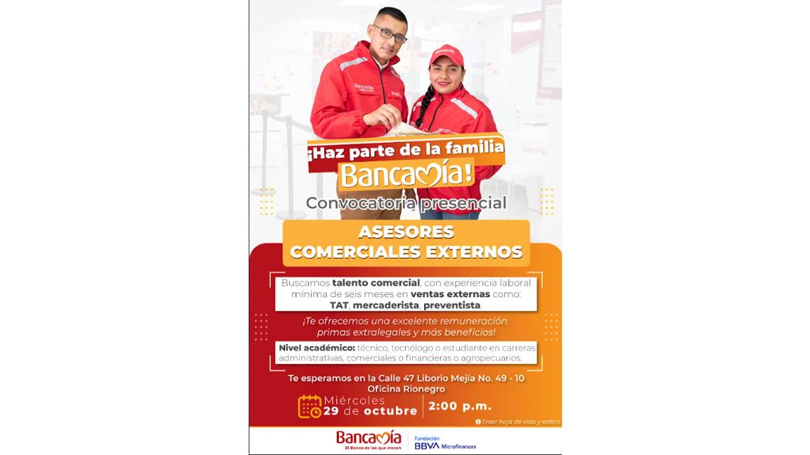 ¿Te gustan las ventas en calle, hablar con gente y ver cómo tus clientes crecen con crédito bien colocado? En Bancamía buscamos talento con actitud comercial.